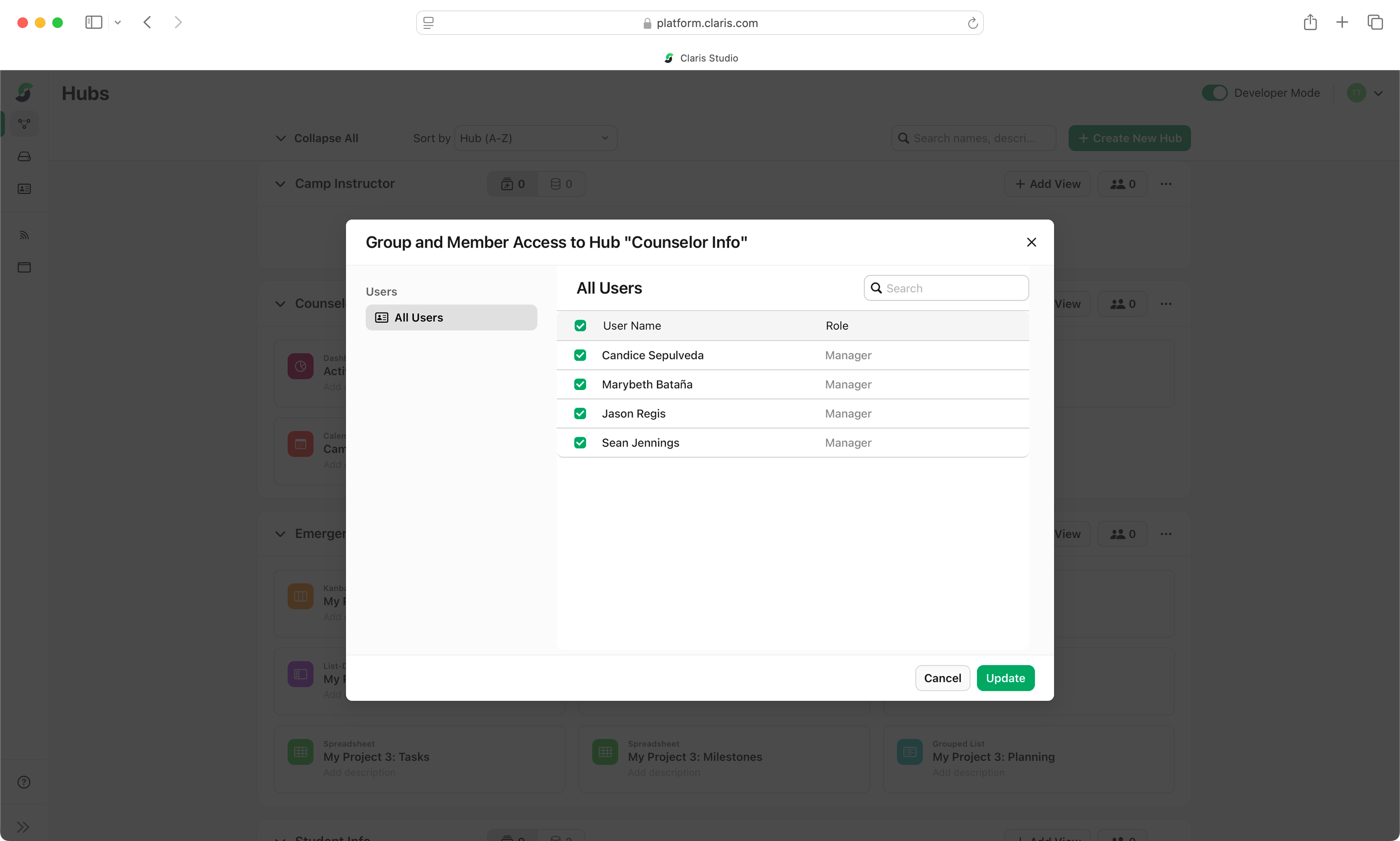 Control who can access specific hubs, views, and records through flexible, role-based permissions.